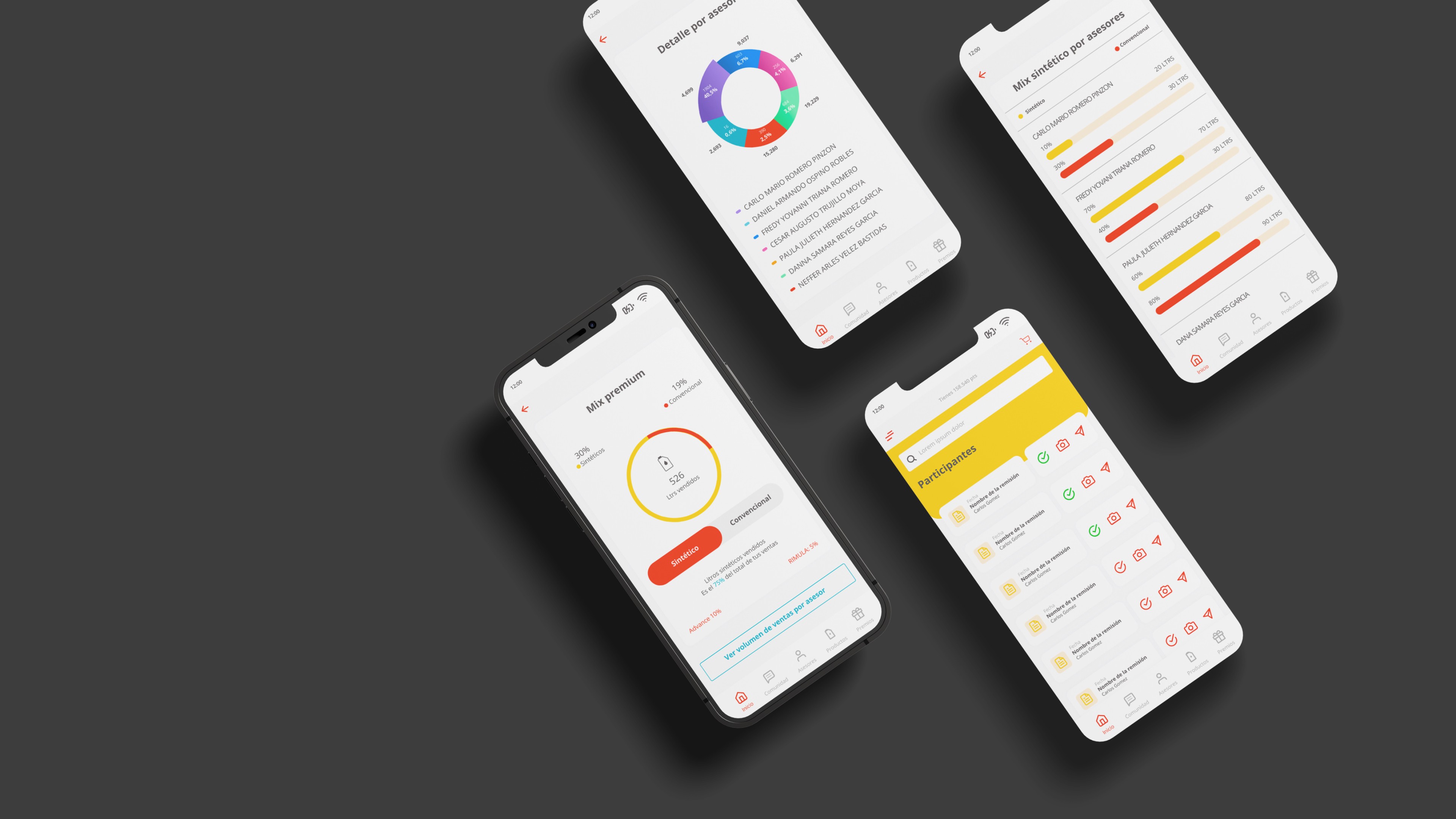 Características destacadas del proyecto: • Visualización de datos por asesor y tipo de lubricante: La aplicación permite a los supervisores monitorear las ventas mensuales desglosadas por asesor y por tipo de lubricante (sintético o convencional), facilitando el análisis detallado del rendimiento individual y del equipo. • Interfaz intuitiva y moderna: El diseño presenta una interfaz limpia y moderna, con gráficos y tablas que facilitan la interpretación rápida de la información, mejorando la toma de decisiones en tiempo real. • Enfoque en la movilidad: Al ser una aplicación móvil, ofrece a los supervisores la flexibilidad de acceder a los datos desde cualquier lugar, optimizando la gestión y el seguimiento de las ventas en campo.